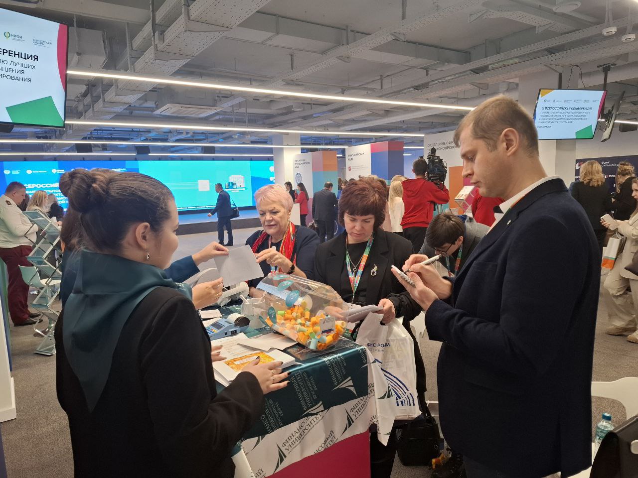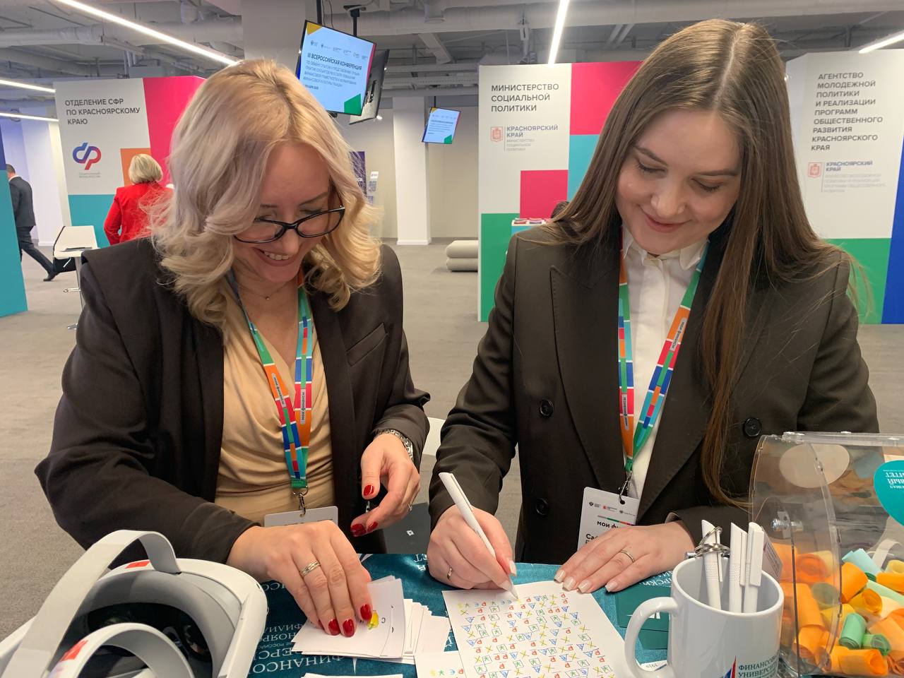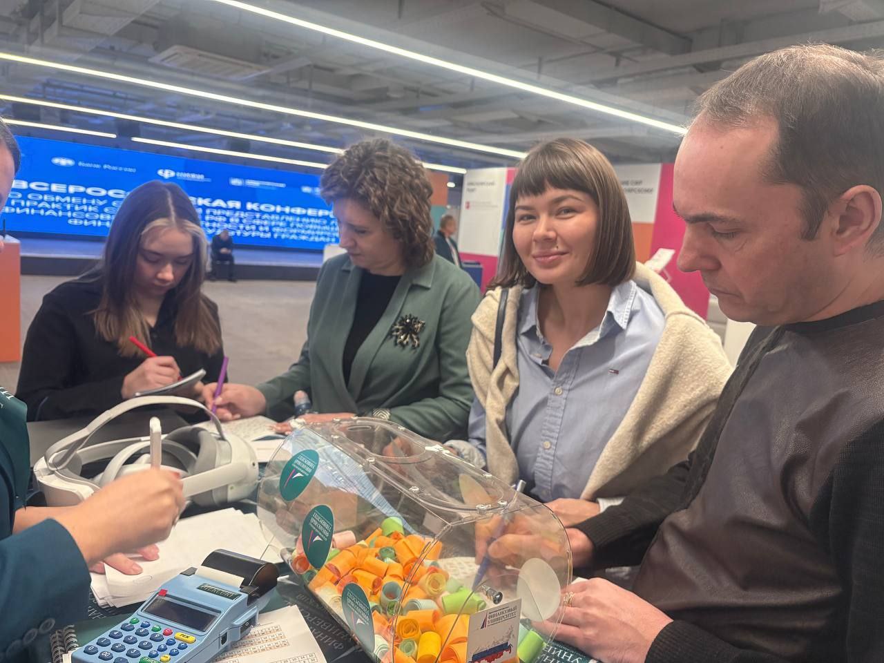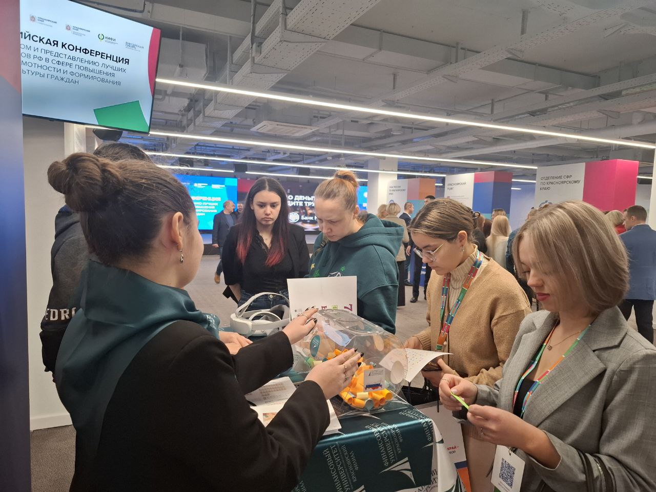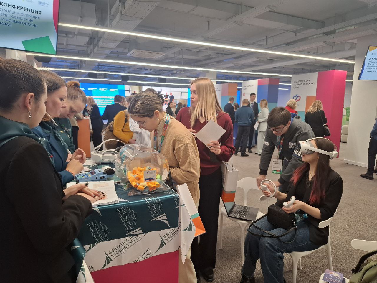 В рамках работы конференции одной из центральных и наиболее востребованных интерактивных зон выступила площадка Красноярского кампуса Финуниверситета. Здесь участникам предлагалось не просто проверить внимательность, разгадывая тематические ребусы, но и получить ценный практический опыт. Особый интерес вызвали VR-очки с игрой «Путь инвестора», предоставившие каждому желающему уникальную возможность погрузиться в динамичный мир инвестиций и эффективно отработать ключевые навыки принятия решений.