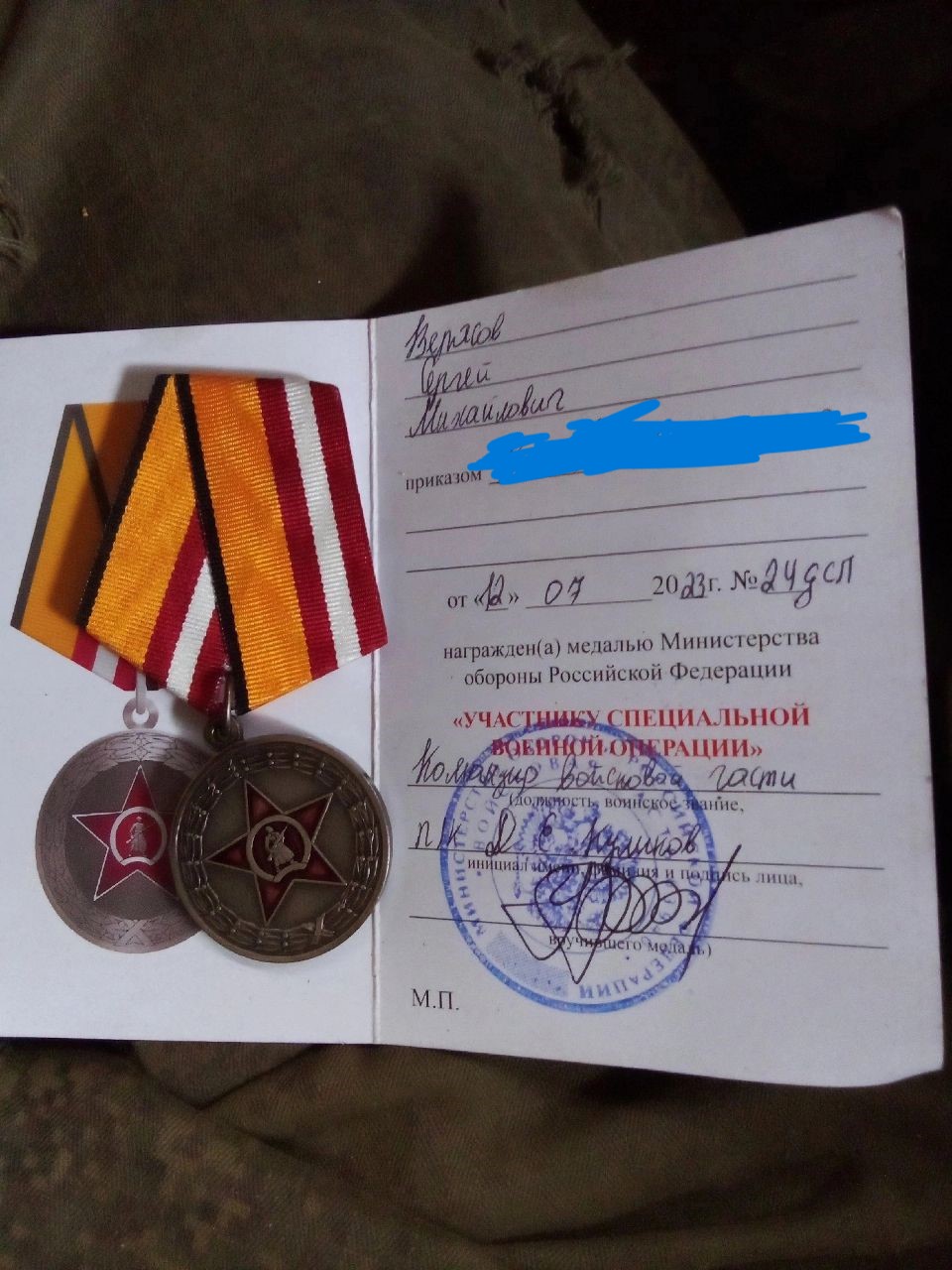 Наш воин был награждён командирской Почётной грамотой и медалью «Участнику специальной военной операции».